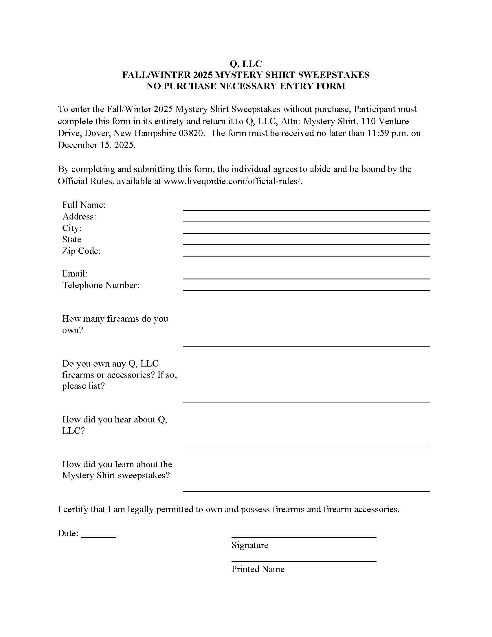 © 2021 LIVE Q OR DIE Q, LLC., Q, EL CAMINO, HONEY BADGER, UNPOSSIBLE, EL CAMINO, HALF NELSON, FULL NELSON, ERECTOR, THUNDER CHICKEN, TRASH PANDA, CHERRY BOMB, JUMBO SHRIMP, and KEN'S FACE (logo) are U.S. registered trademarks of Q, LLC. All rights reserved.