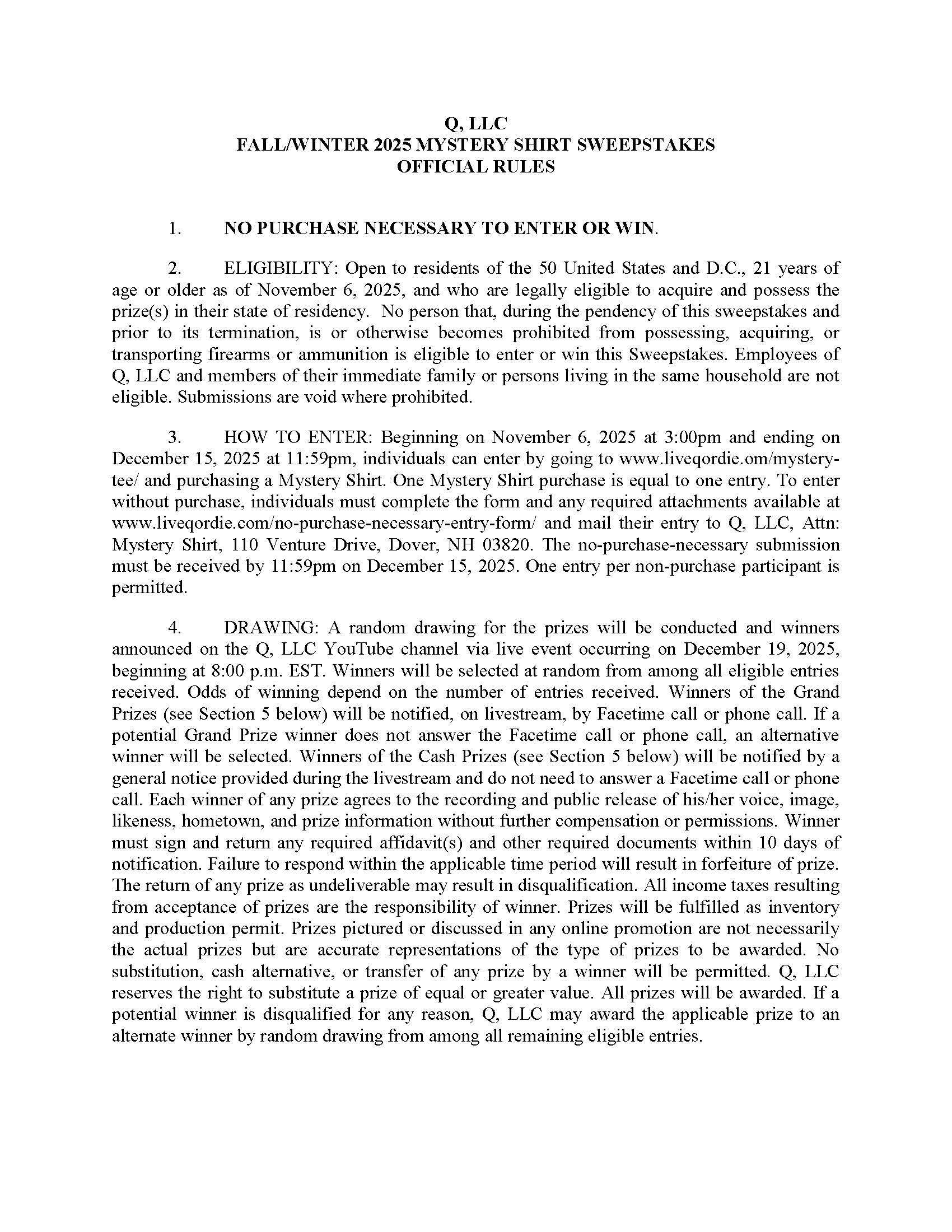 © 2021 LIVE Q OR DIE Q, LLC., Q, EL CAMINO, HONEY BADGER, UNPOSSIBLE, EL CAMINO, HALF NELSON, FULL NELSON, ERECTOR, THUNDER CHICKEN, TRASH PANDA, CHERRY BOMB, JUMBO SHRIMP, and KEN'S FACE (logo) are U.S. registered trademarks of Q, LLC. All rights reserved.