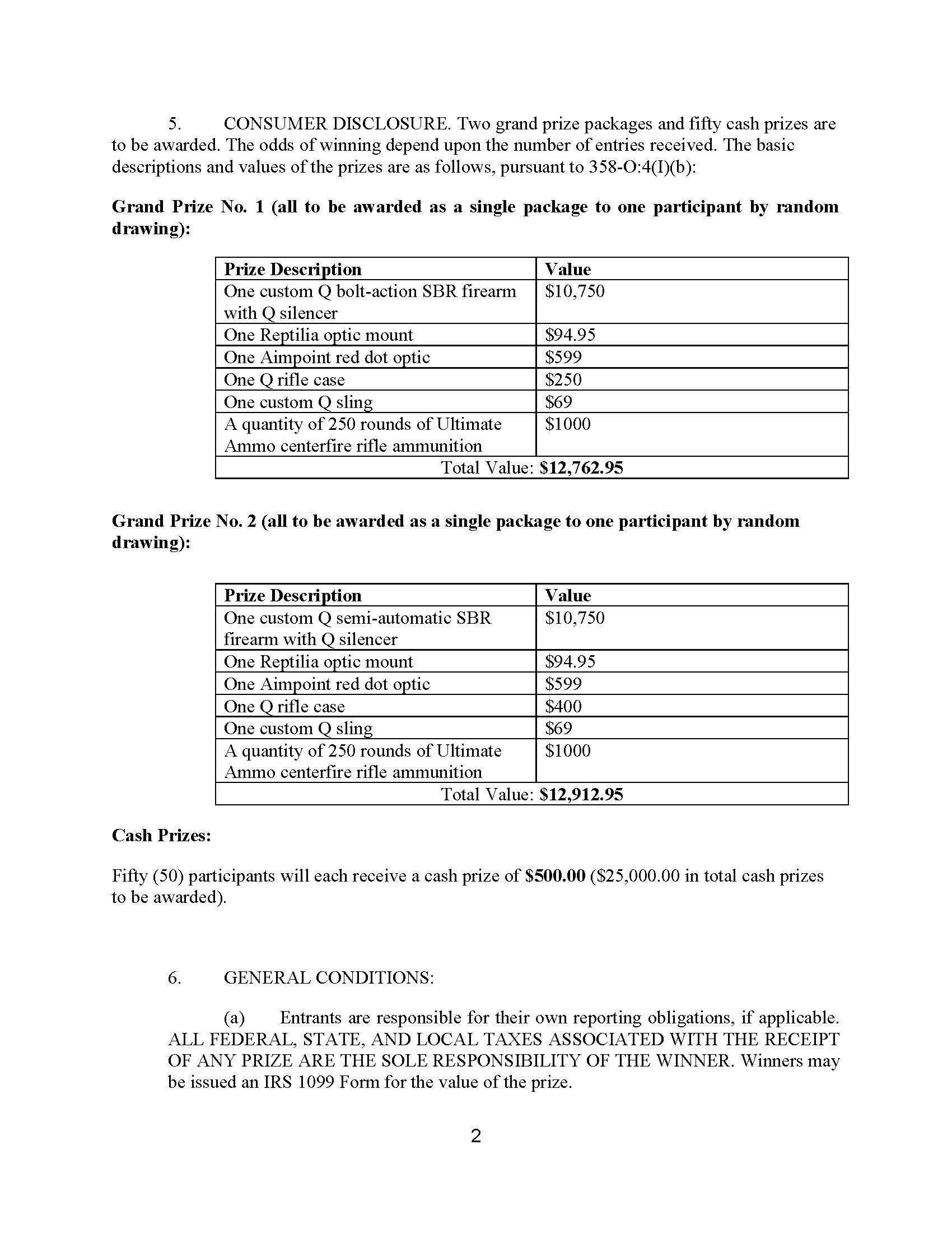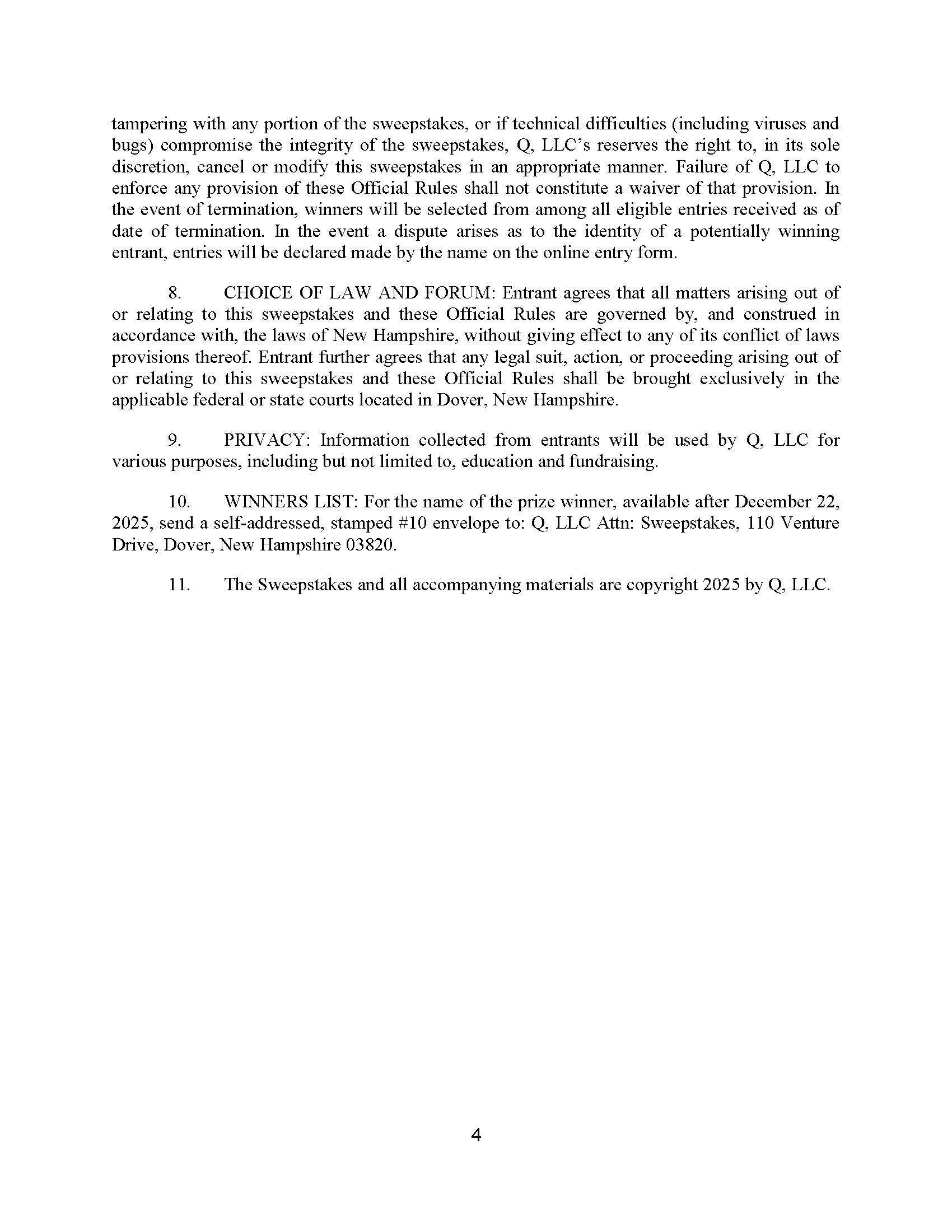 NO PURCHASE NECESSARY.  PURCHASE WILL NOT INCREASE YOUR CHANCES OF WINNING.  ALL FEDERAL, STATE, LOCAL, AND MUNICIPAL LAW AND REGULATIONS APPLY.  VOID WHERE PROHIBITED.