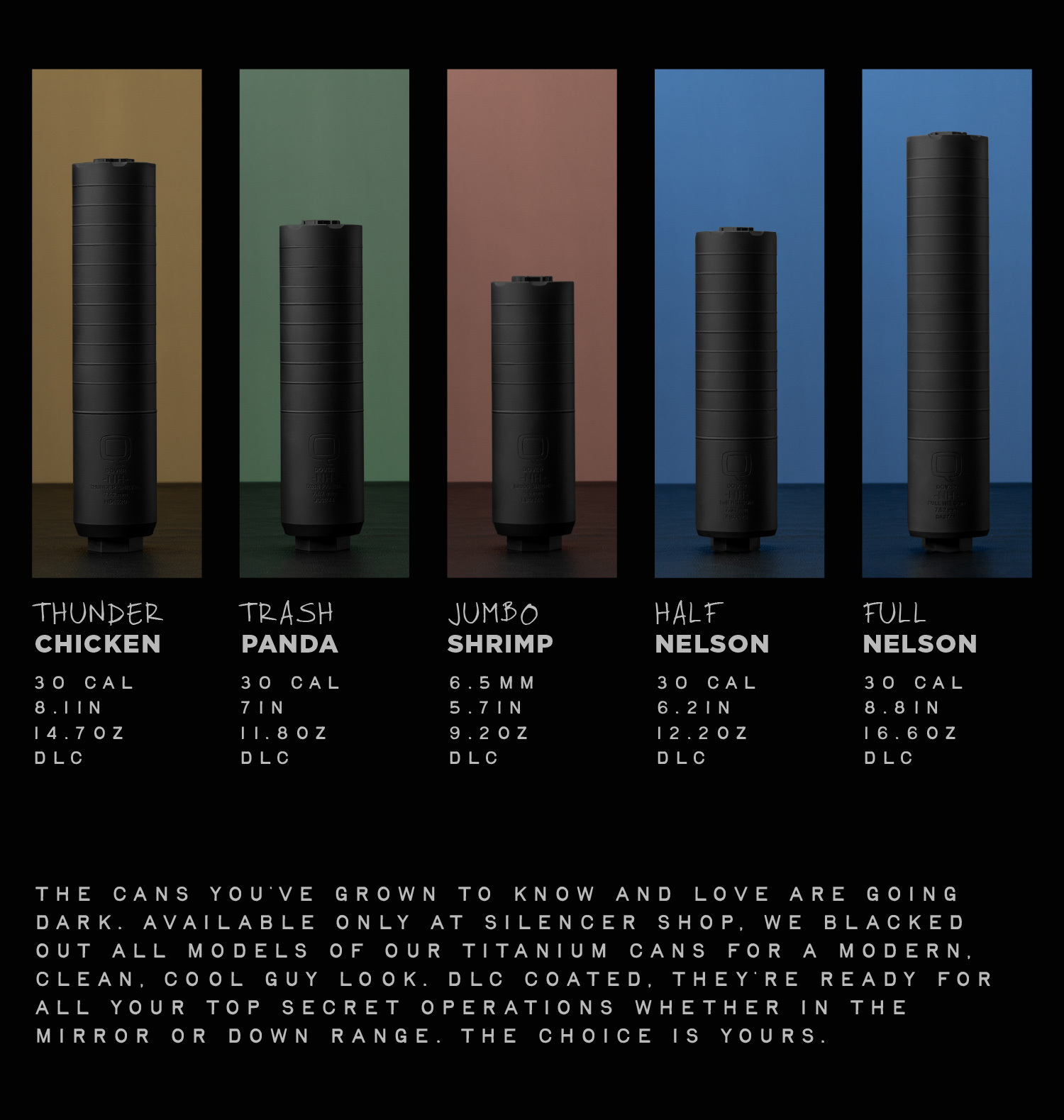 Meet the new Black Titanium Silencer Line, our flagship silencers, now dipped in an ultra-durable Black DLC finish that looks as mean as it performs. This is the same titanium DNA that made Q famous, just blacked-out.